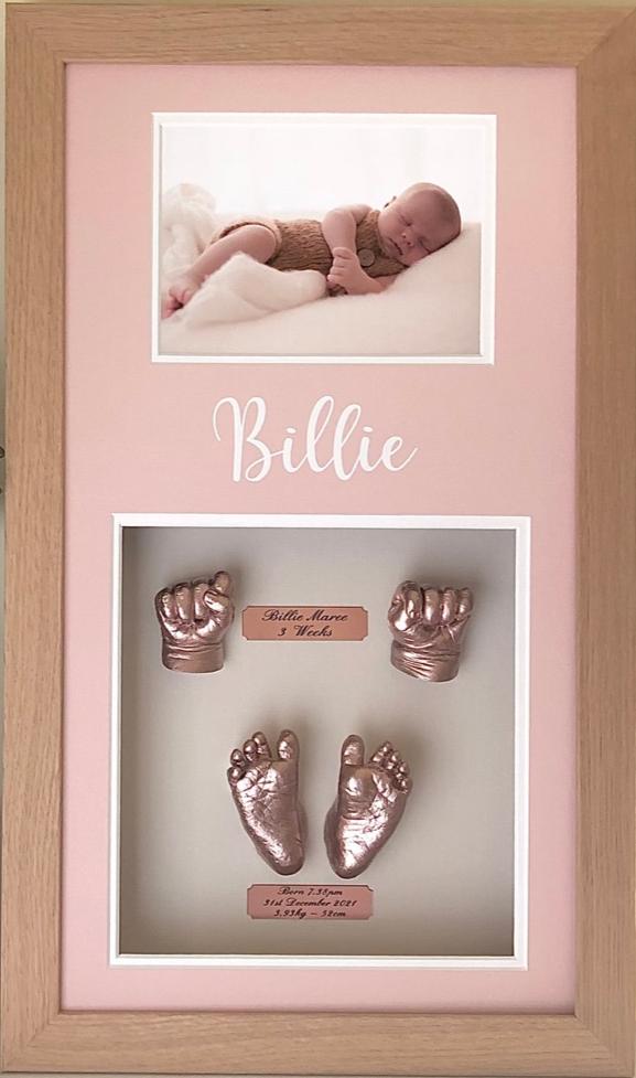Tiny, perfect hands and feet are captured in exquisitely fine detail, using a completely non-toxic, skin-safe, product showing an incredible amount of detail including tiny lines, wrinkles and often finger prints.